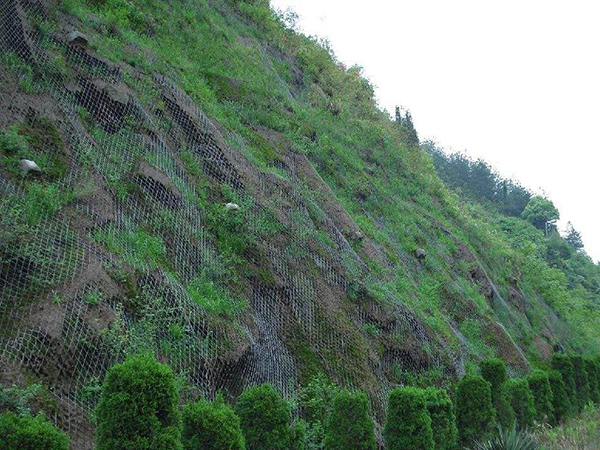 客土噴播掛網是SNS柔性主動防護網的一種,同時也被稱為:GSS2A絞索網,S250絞索網,QUAROX絞索網,SPIDER絞索網,GQS主動防護網,GSS2A主動防護網,SPIDER螺旋網,GQS絞索網等。客土噴播掛網邊坡穩定系統是一種以S3高強度鋼絞線螺旋網片為主體的,主動防護形式。對于高陡巖質邊坡加固、孤石和松動的危巖加固來講,客土噴播掛網邊坡穩定系統是一種高質量的防護產品。